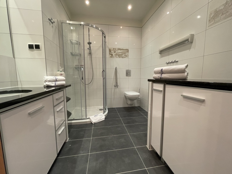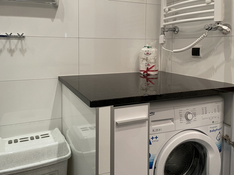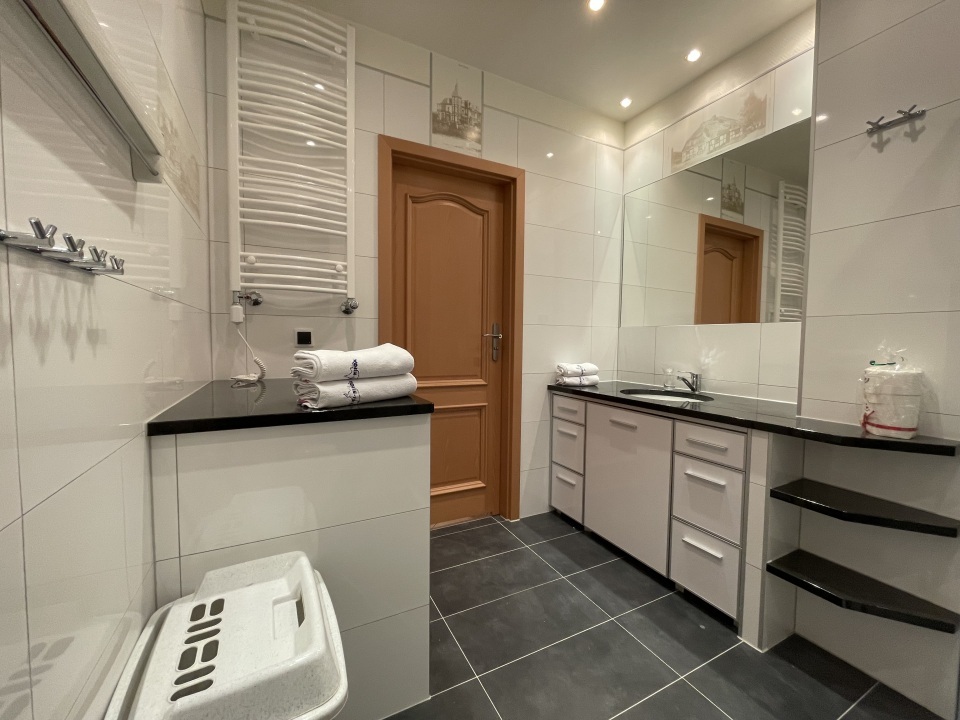 Łazienka : prysznic, WC,   umywalka, lustro, pralka, komplety , ręczników
